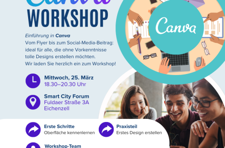 Der Workshop „Flyer und Poster einfach gestalten mit dem Grafikprogramm Canva“ am 25. März im Smart City Forum ist ausgebucht. Gerne können Sie sich jedoch auf die Warteliste setzen lassen. Bei ausreichender Personenanzahl besteht die Möglichkeit, dass der Kurs wiederholt wird.