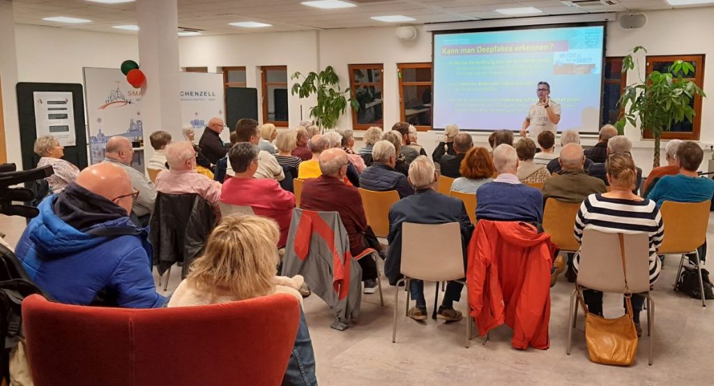 „Wer hat in den letzten Wochen einen Betrugsversuch über das Internet erlebt?“, fragte Marco Hohmann, Kriminalhauptkommissar bei der Polizei Osthessen, zum Einstieg in das Thema „Online-Betrug“. Smart City Eichenzell, antonius sowie Leben und Arbeiten in Eichenzell e.V. hatten am 1. Oktober erneut zum Digitalcafé ins Smart City Forum eingeladen. Viele Gäste waren gekommen, um sich aus erster Hand über aktuelle Betrugsmaschen in verschiedenen Bereichen zu informieren – und lauschten gebannt, als Hohmann in seinem einstündigen Vortrag Einblicke in die Polizeiarbeit gab.