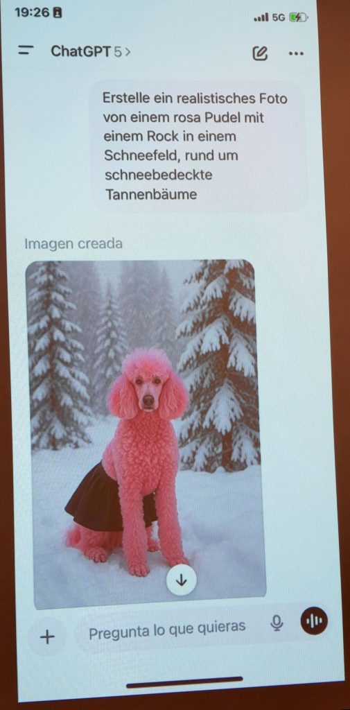 Auch Briefe, Tabellenprüfungen, Übersetzungen, Seminarkonzepte, Liedtexte, Grafiken oder Gedichte könne die KI in Sekundenbruchteilen bis zu wenigen Minuten in hoher Qualität liefern, wenn man ihnen per Sprach- oder Texteingabe (sogenannten „Prompts“*) die Inhalte detailliert vorgebe. Die Arbeitsergebnisse ließen sich teilen, verschicken oder sogar als Word-Dokument herunterladen. Als Lernhilfe, schnelle Informationssuche und für Routineaufgaben oder eine verbesserte Barrierefreiheit – wie das Vorlesen von Texten – erleichterten Künstliche Intelligenzen die Arbeit von Menschen. Allerdings um den Preis von Originalität und der persönlichen Note: „KI kann immer nur mit dem arbeiten, was schon da ist. Sie erkennt Muster und kombiniert Bekanntes, aber sie entwickelt keine wirklich neuen Dinge.“