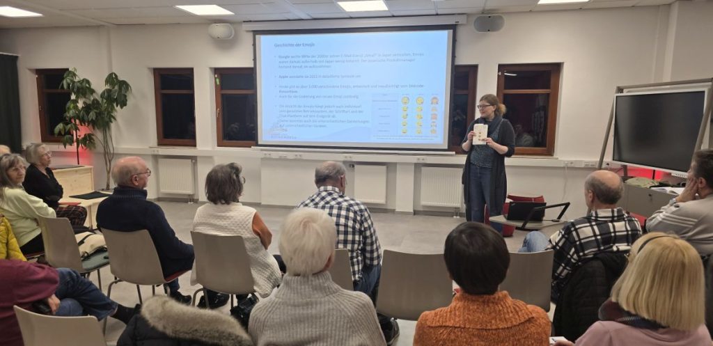 „Emojis sind nicht nur bunt und niedlich, teilweise stecken handfeste politische oder wirtschaftliche Interessen dahinter“, betonte Anne Jana einen weiteren Aspekt. So gebe es inzwischen Emojis, die verschiedene Haut- und Haarfarben, Geschlechter, Behinderungen sowie nicht stereotype Berufe und Symbole aus unterschiedlichen Religionen abbildeten. „Diese Entwicklungen mussten teilweise hart erkämpft werden, weil sich das Unicode-Konsortium weigerte, sie umzusetzen“. So seien Frauen anfangs beispielsweise nur als tanzend, sich die Nägel und die Haare schneidend abgebildet worden, was die Lebenswelt von Frauen nur unzureichend abgebildet habe. Auch Emojis für Menschen im Rollstuhl, mit Hör- und Sehbeeinträchtigung sowie Prothesen seien erst vor wenigen Jahren hinzugekommen.