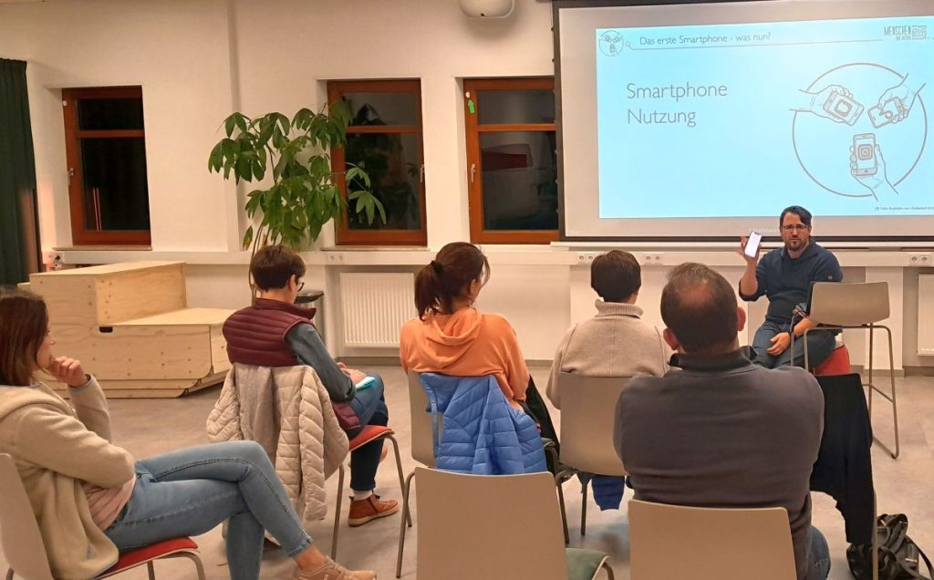 Der Vortrag begann mit einem kleinen gedanklichen Paukenschlag: „Das hier“, betonte Medienpädagoge Felix Rudolph-von Niebelschütz und hob sein Smartphone in die Luft, „ist die Eintrittskarte in die Erwachsenenwelt. Sobald Ihr Kind eines hat, ist es im Kontakt mit allen möglichen Erwachsenenthemen. Gleichzeitig leben wir im Medienzeitalter und unsere Kinder müssen den Umgang mit dem Smartphone irgendwann lernen. Die Frage für uns als Erziehende ist also: Wie begleiten wir sie dabei?“ Der Medienpädagoge hielt im Smart City Forum am 29. Oktober einen Vortrag im Rahmen der kostenlosen Reihe „Kinder in digitalen Welten begleiten“, die Smart City Eichenzell in Kooperation mit „Menschen und Medien e.V.“ für Eltern, Großeltern und andere Erziehende anbietet. Thema des Vortrags war „Das erste Smartphone fürs Kind – was nun?!“.